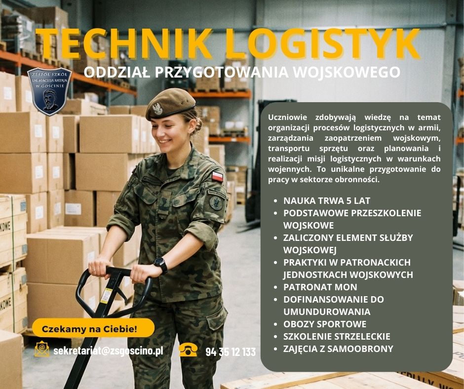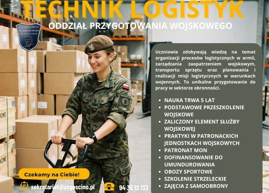 Od września 2025/2026 w Technikum prowadzimy kształcenie, która łączy Oddział Przygotowania Wojskowego z nauką w dwóch zawodach do wyboru.